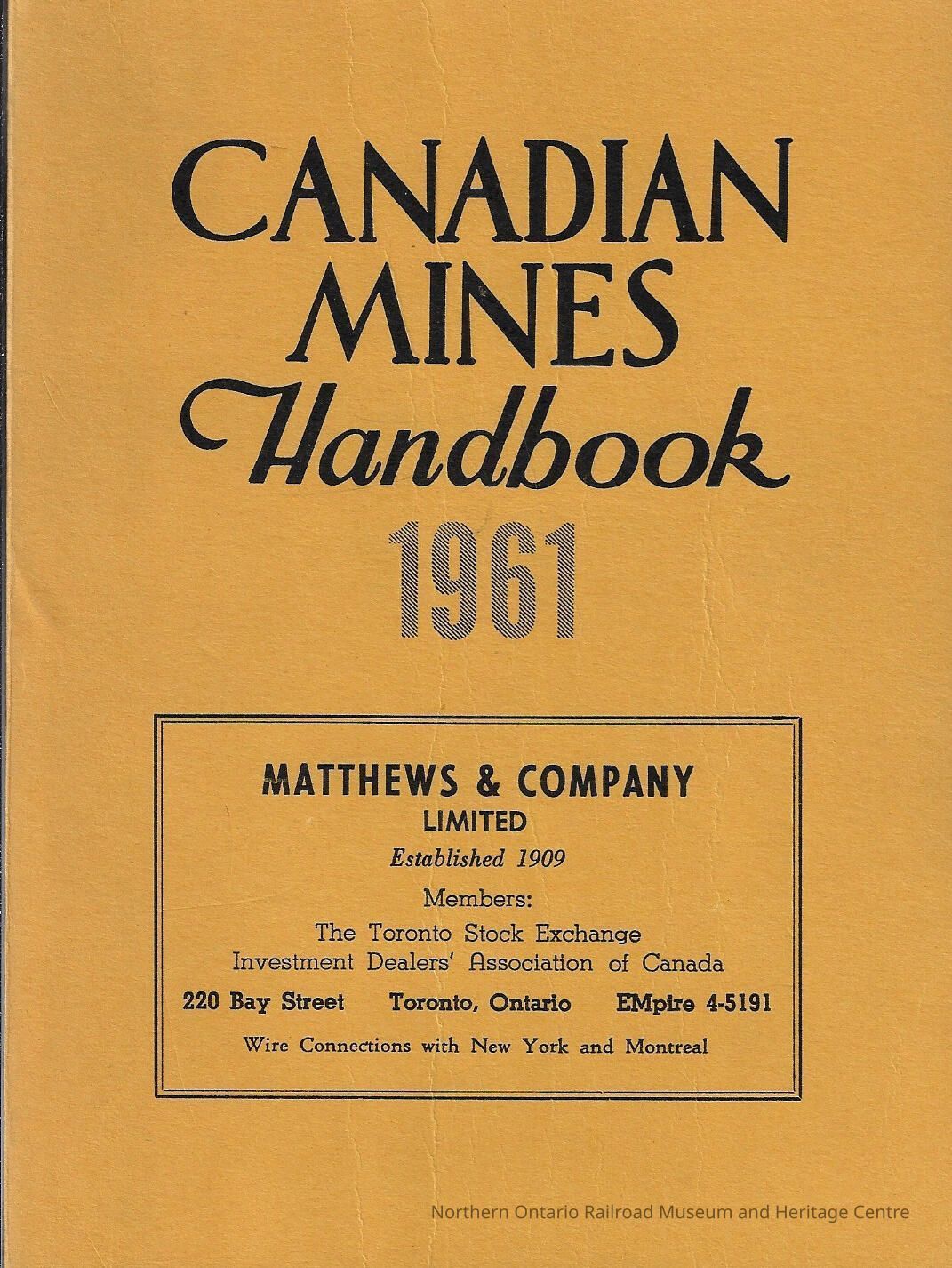 Book, handbook published by the Northern Miner Press discussing all Canadian Mines as of 1961Context