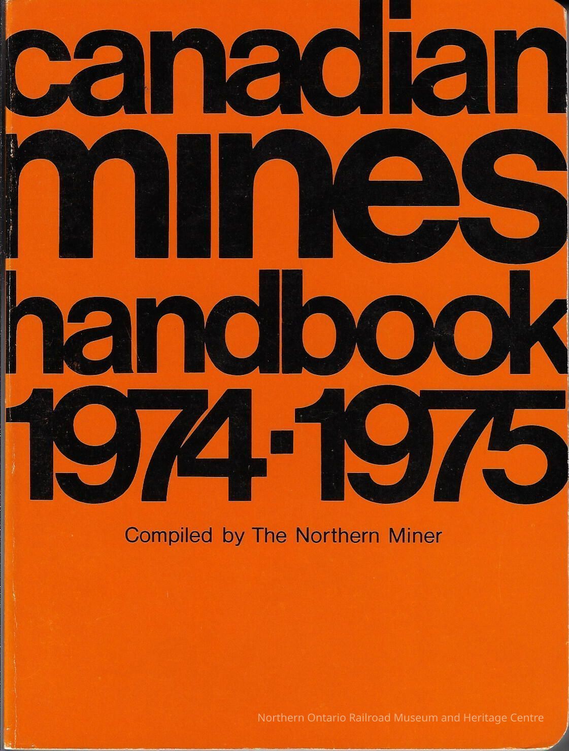 Book, handbook published by the Northern Miner Press discussing all Canadian Mines as of 1974Context