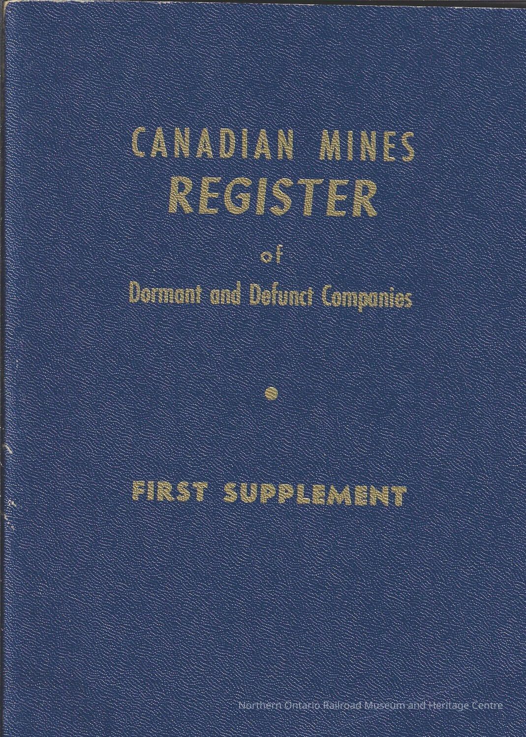 Canadian Mines Register of Dormant and Defunct Companies: First SupplementEntry/Object ID