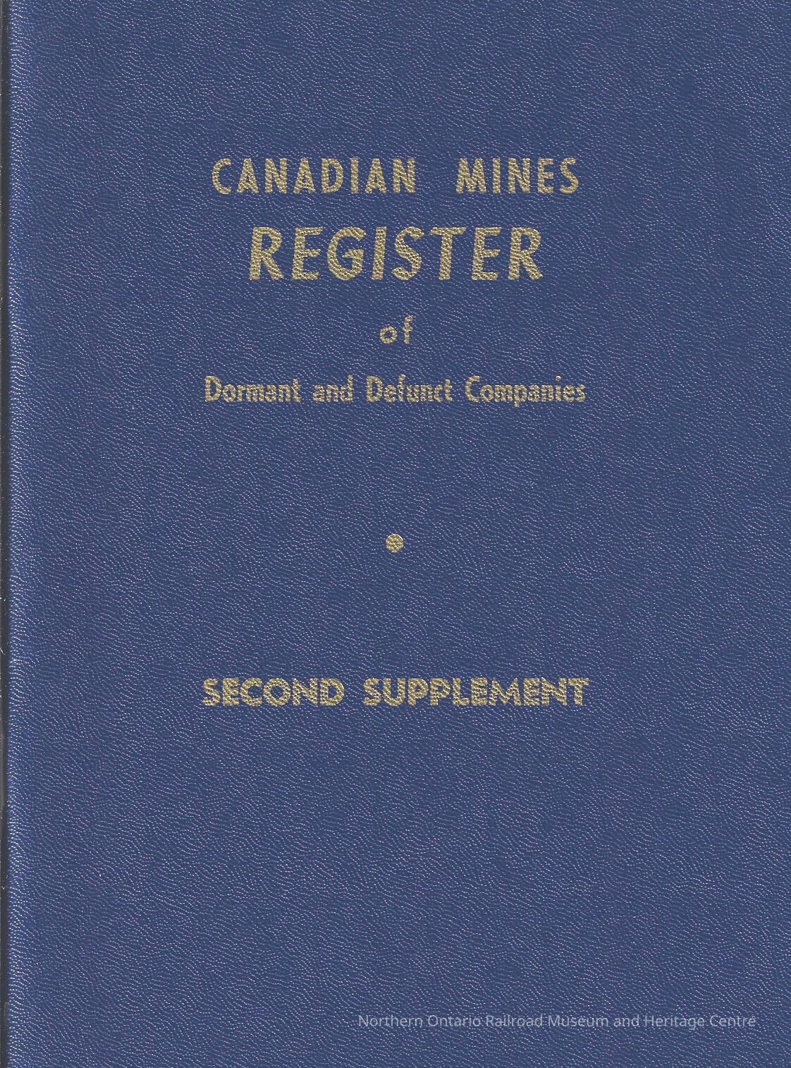 Canadian Mines Register of Dormant and Defunct Companies: Second SupplementEntry/Object ID