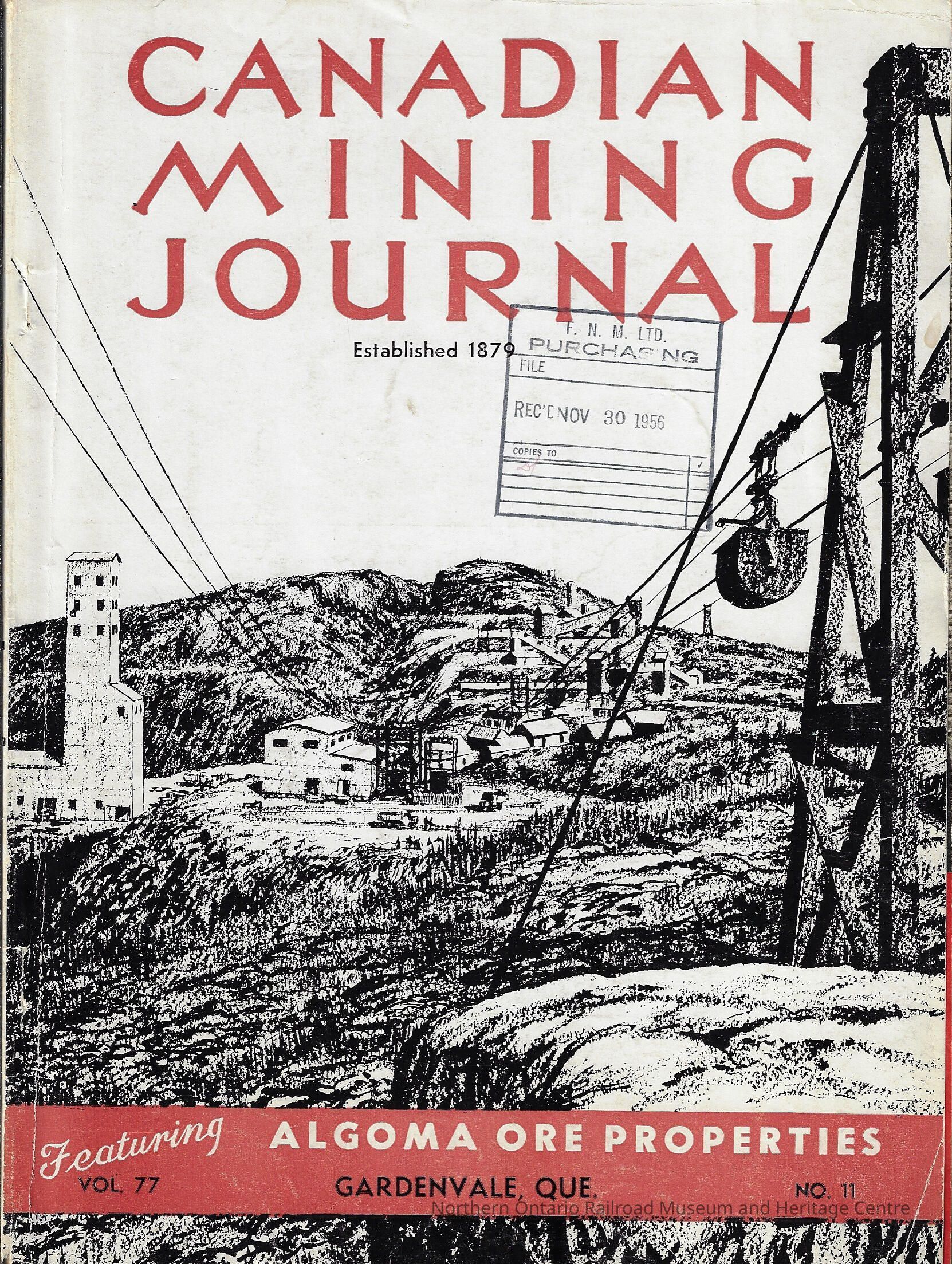 Canadian Mining Journal Vol 77 (11), 1956 Featuring Algoma Ore PropertiesEntry/Object ID