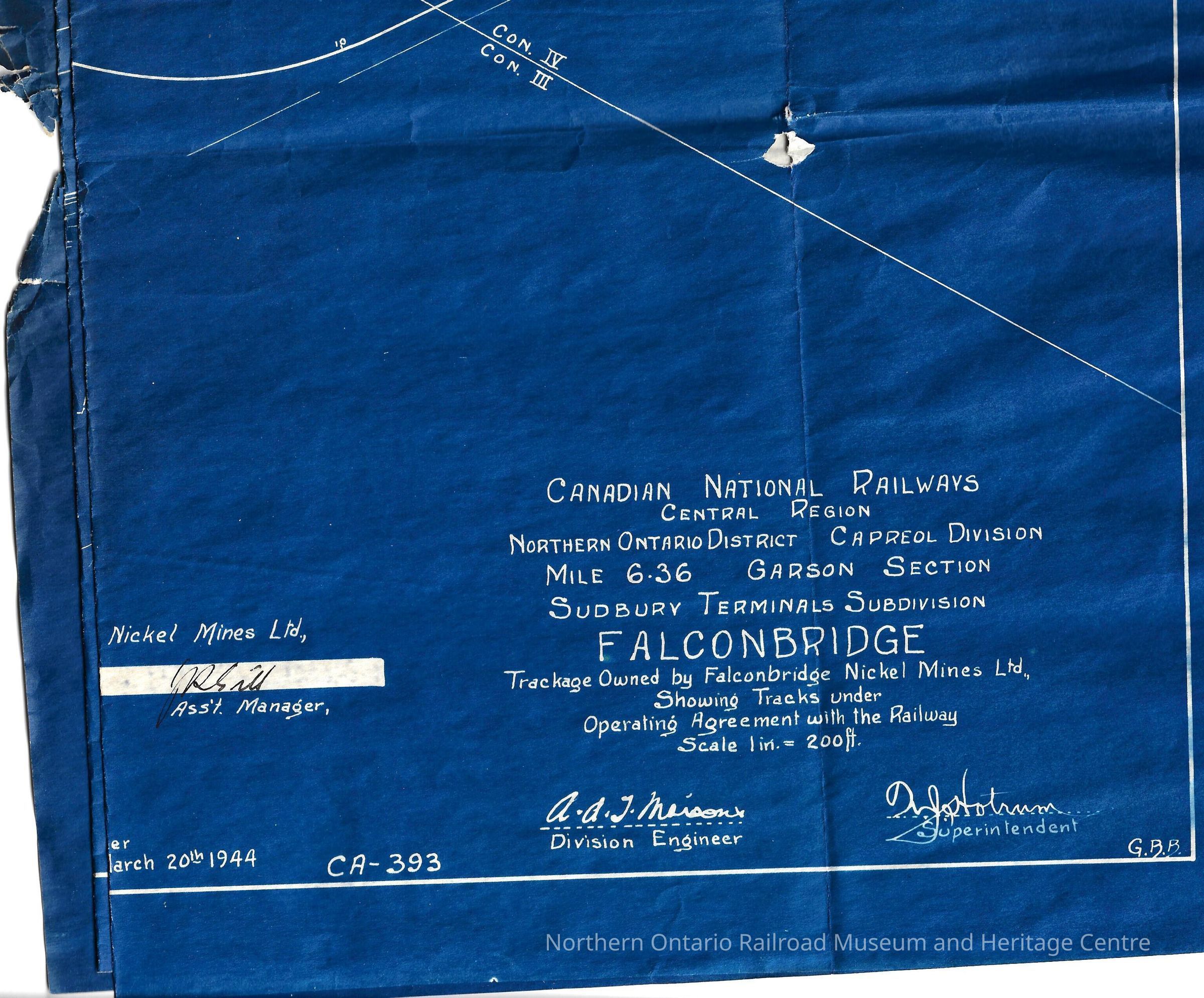 Canadian National branded plan showing the Trackage owned by Falconbridge Nickel MinesDescription