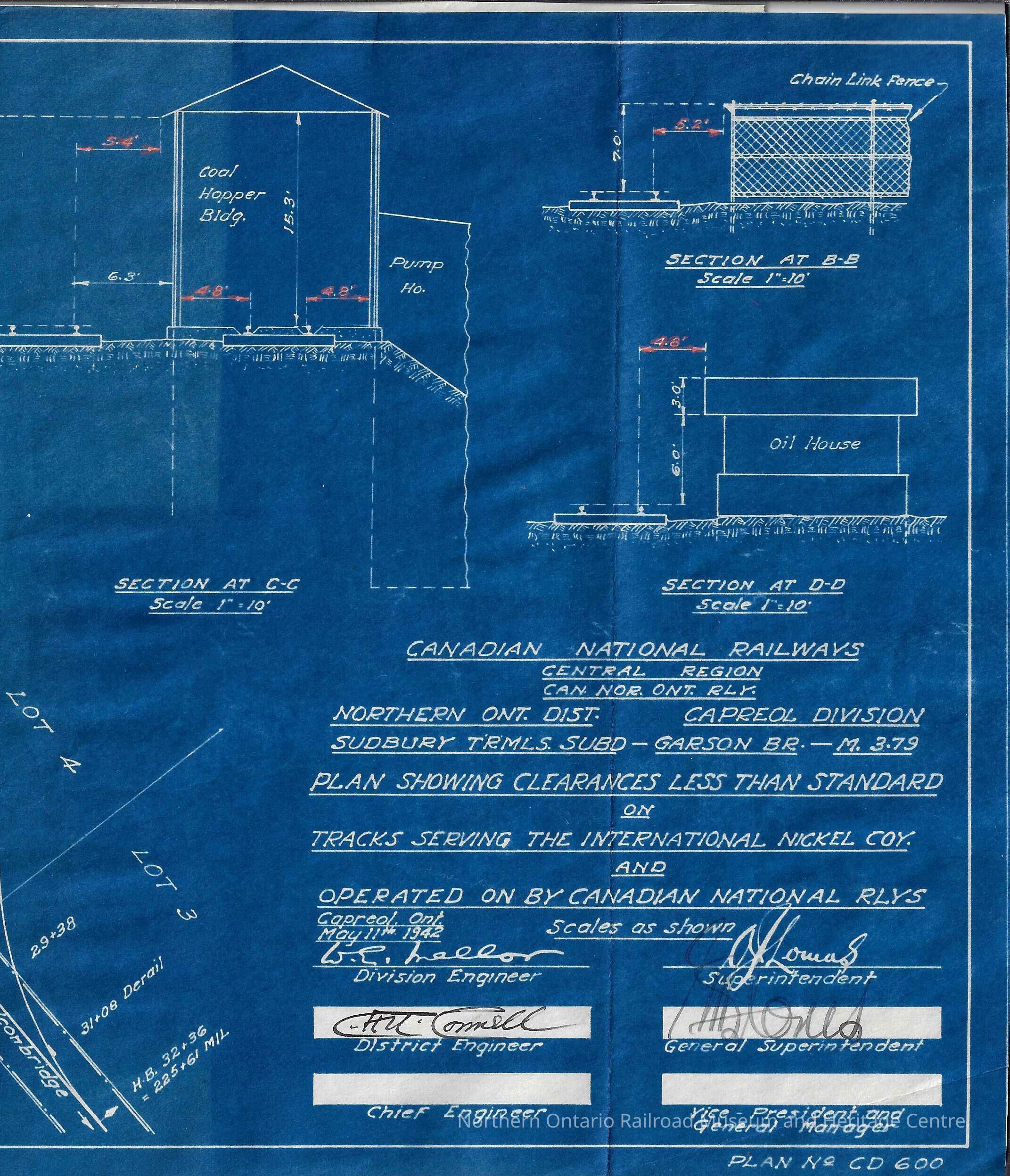 Canadian National plan showing the clearances that are less than standard on the tracks serving the International Nickel Company of Canada and operated on by Canadian National.Context