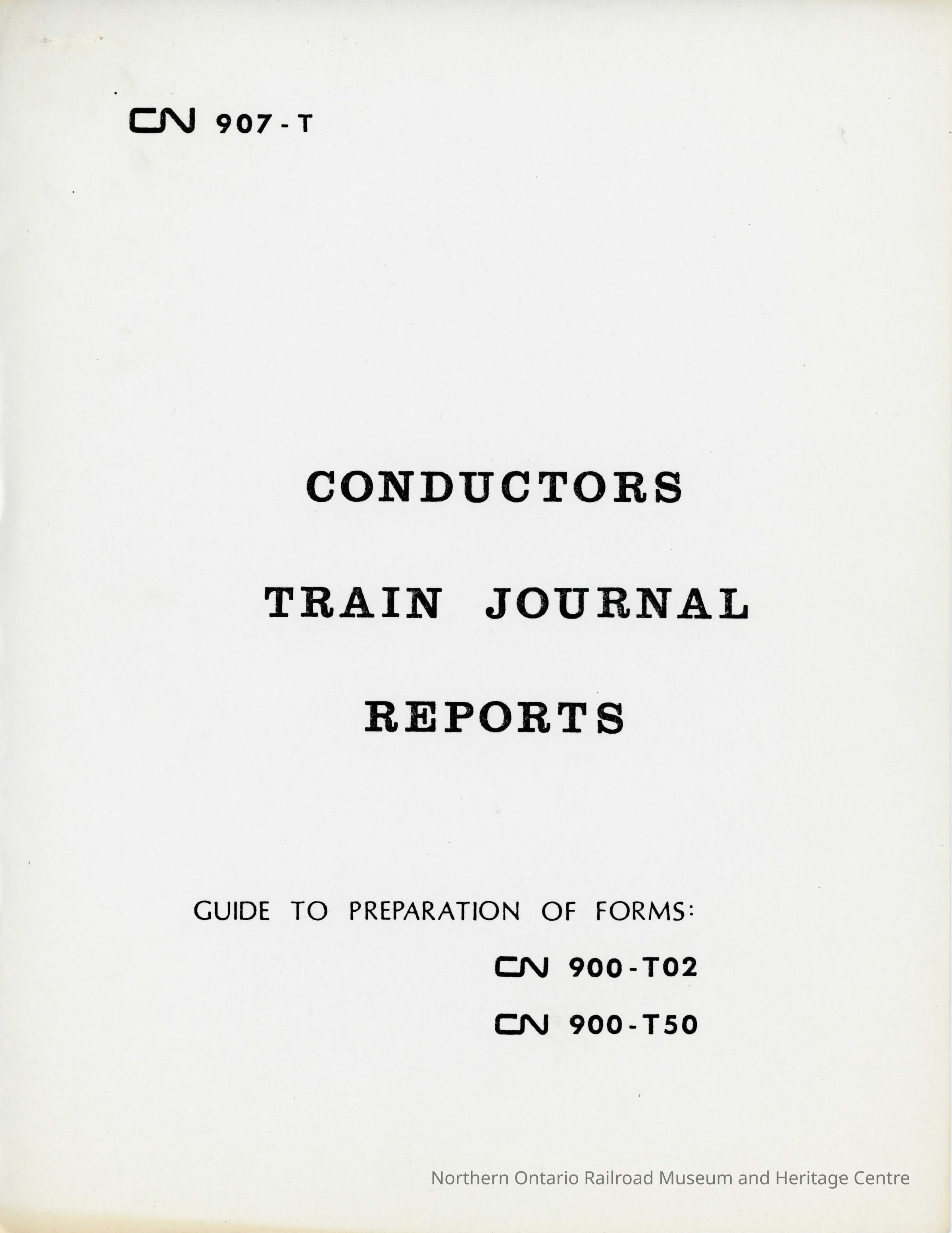 Canadian National: Conductors Train Journal Reports 907-T, Guide to Preparation of Forms CN 900-T02, CN 900-T50Entry/Object ID