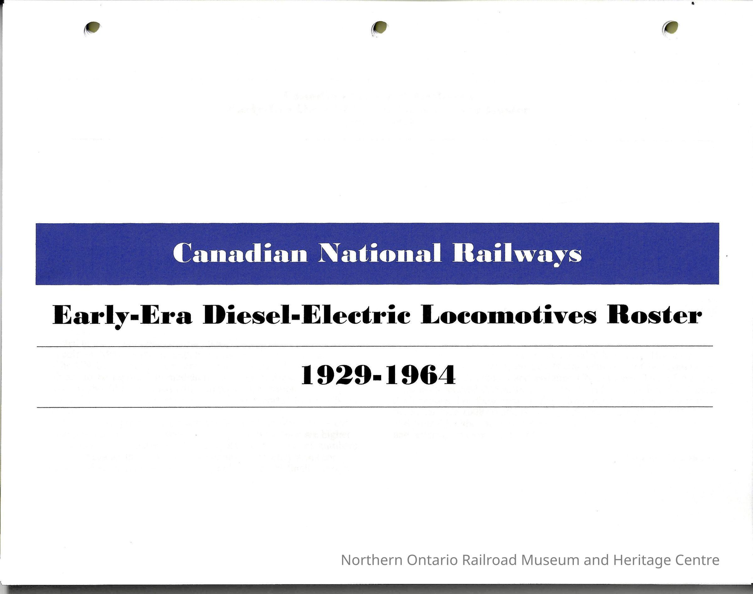 A roster of Diesel-Electric locomotives for Canadian National from 1929-1964.Creator