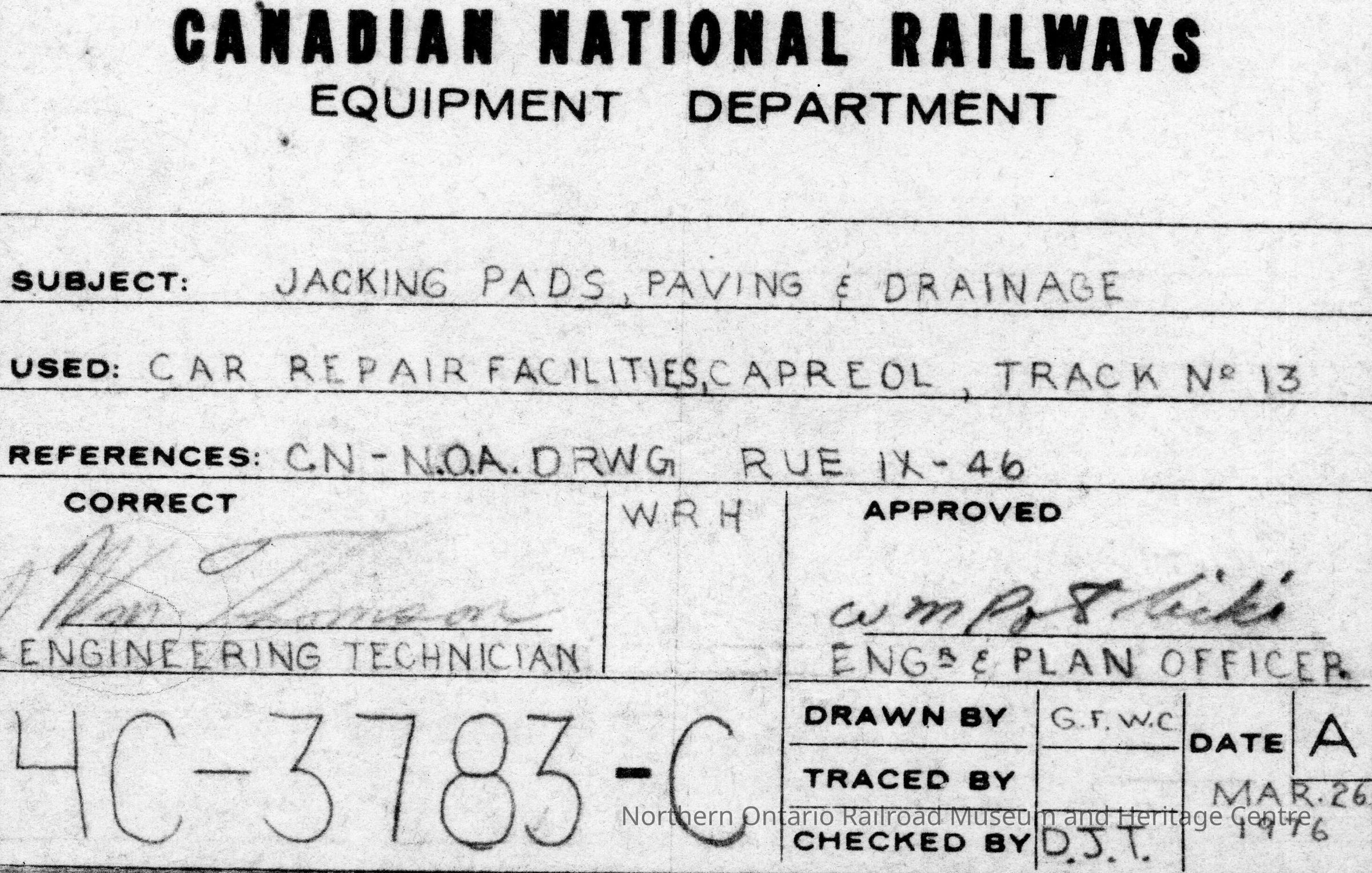 Canadian National Equipment Department: Jacking Pads, Paving and Drainage for the Car Repair Facilities at Capreol, Track #13Entry/Object ID