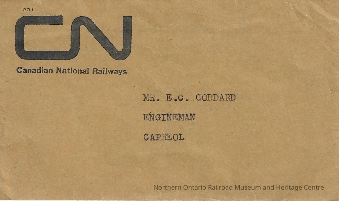 Canadian National: Letter Addressed to E. C. Goddard, Capreol ON, 1966Entry/Object ID