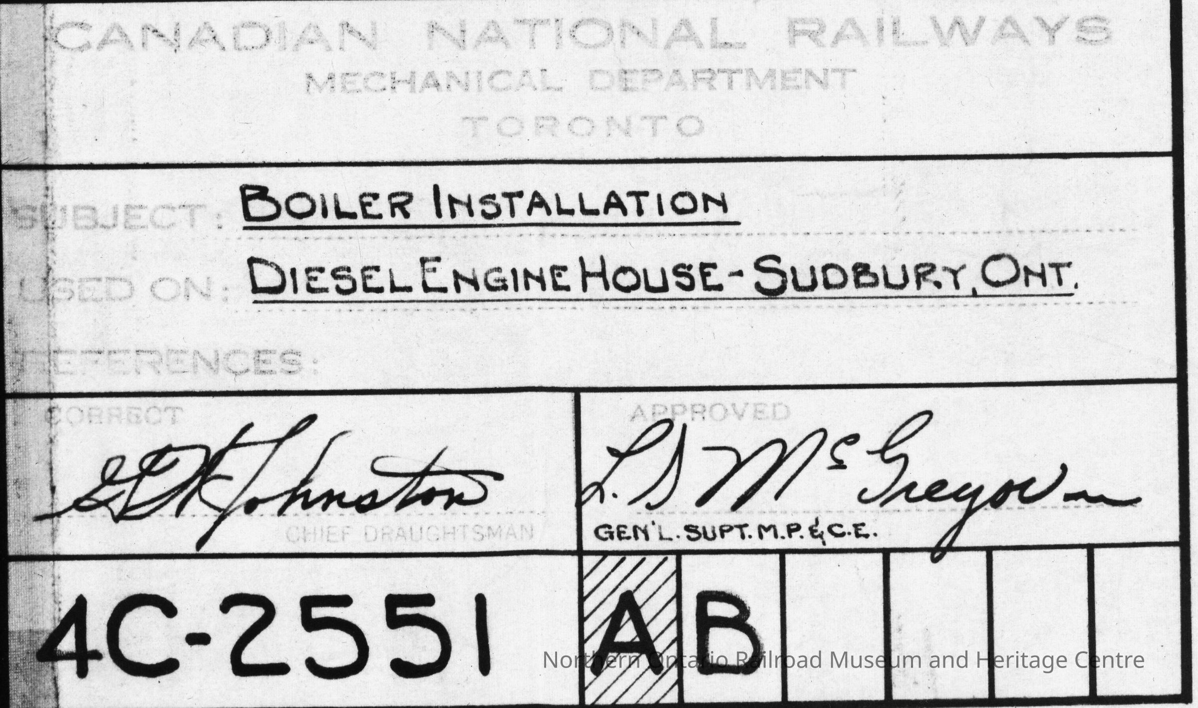 Canadian National Mechanical Department: Plan showing the Boiler Installation at the Diesel Engine House at SudburyEntry/Object ID