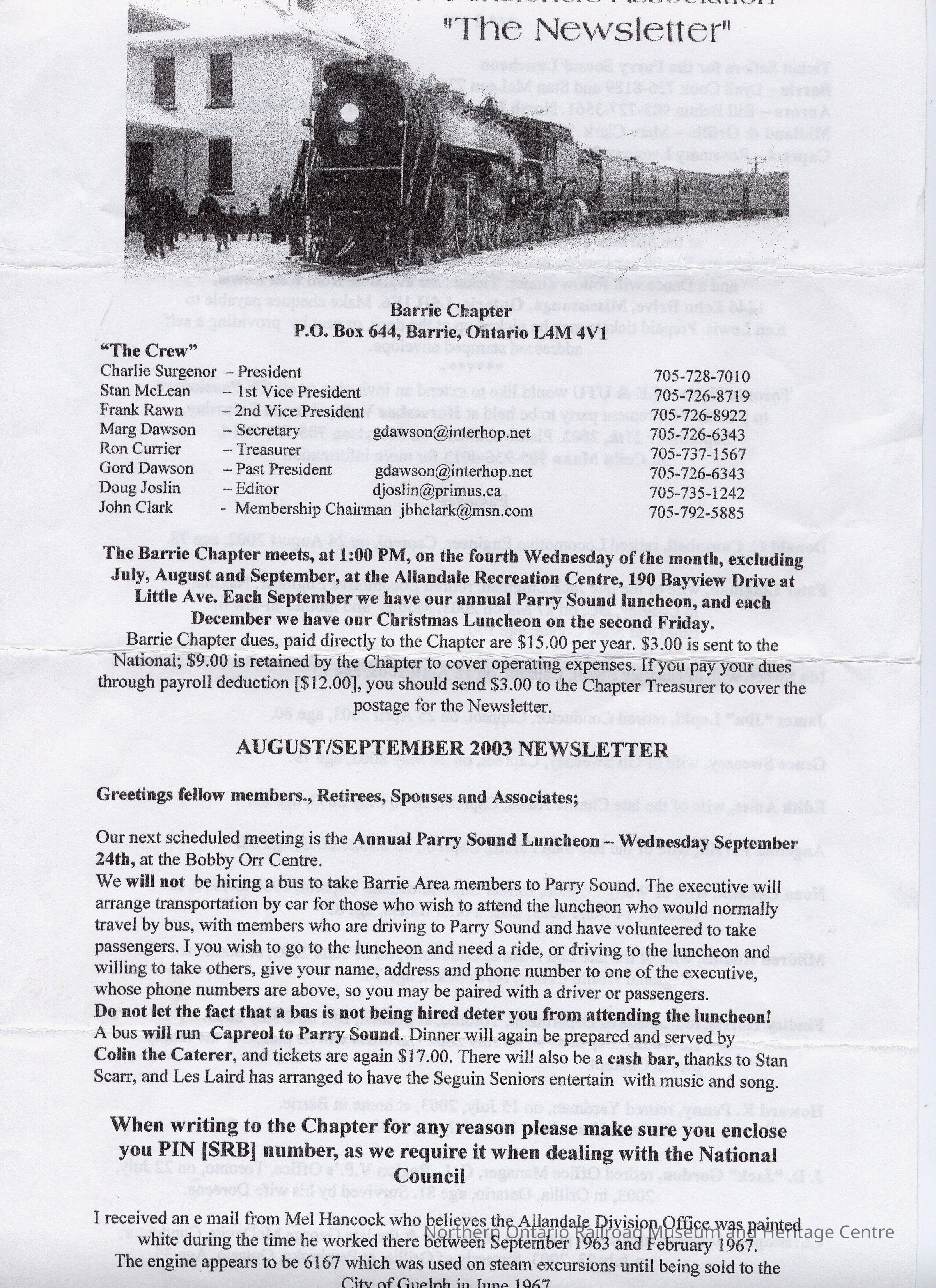 Canadian National Pensioner's Newsletter, August/September 2003Description