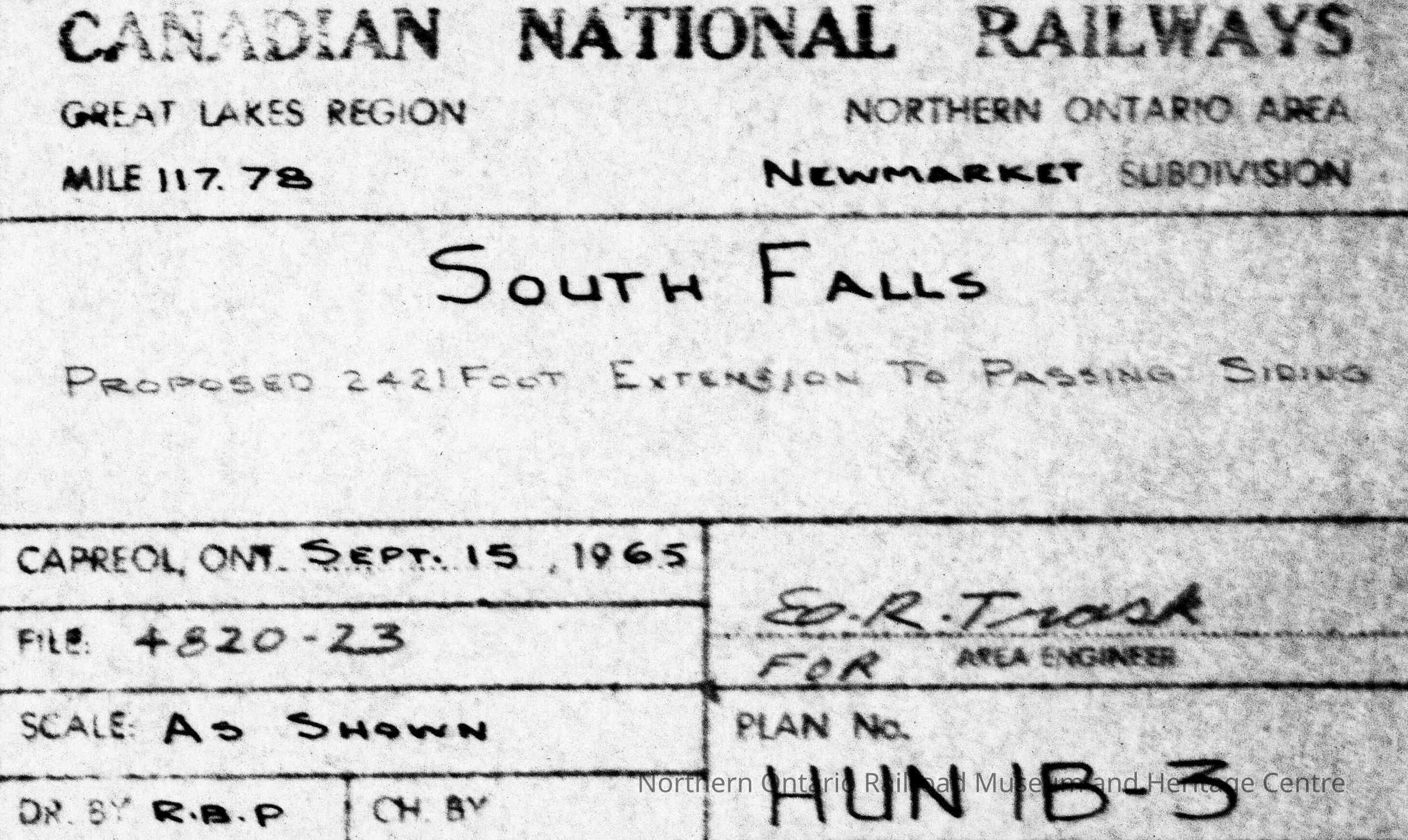 Canadian National: Plan Showing the Proposed Extension to Passing Siding at South FallsDescription