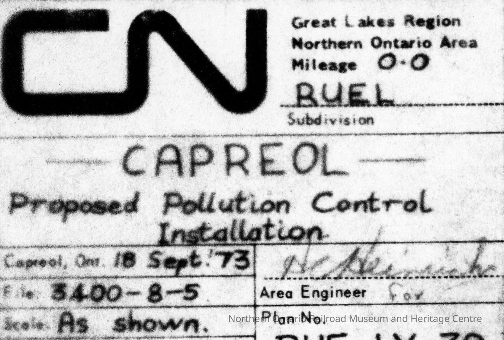 Canadian National: Plan to Install a Proposed Pollution Control in Capreol, September 18, 1973Description