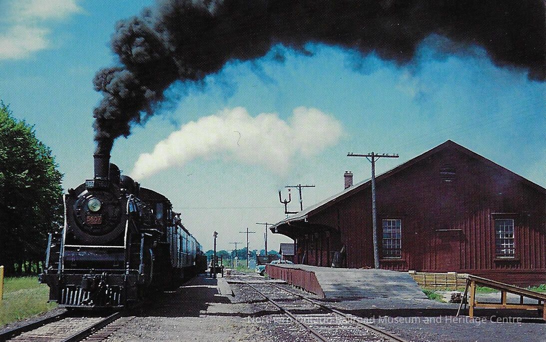 Canadian National Postcard showing Steam Engine # 5607 at the Station in Elora, ON, 1958Entry/Object ID