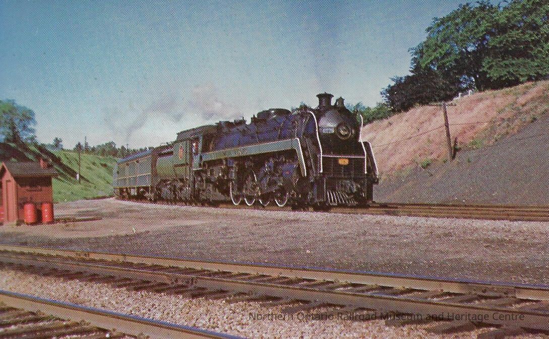 Canadian National Postcard showing Steam Engine #6076 around the curve at Bayview-Hamilton ON, 1958Entry/Object ID