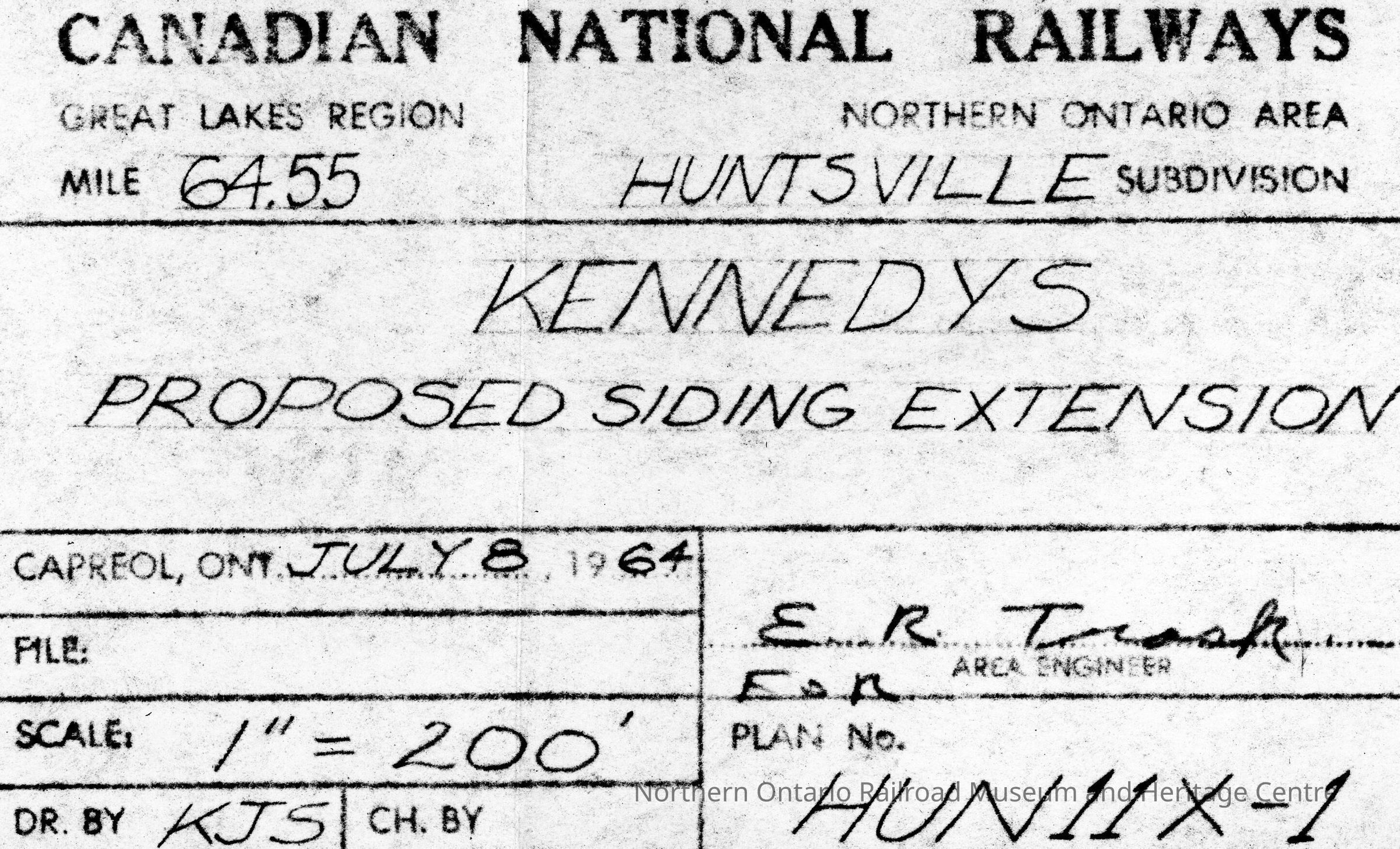 Canadian National Proposed Siding Extension: Huntsville Subdivision Mile 64.55 July 8th, 1964Entry/Object ID