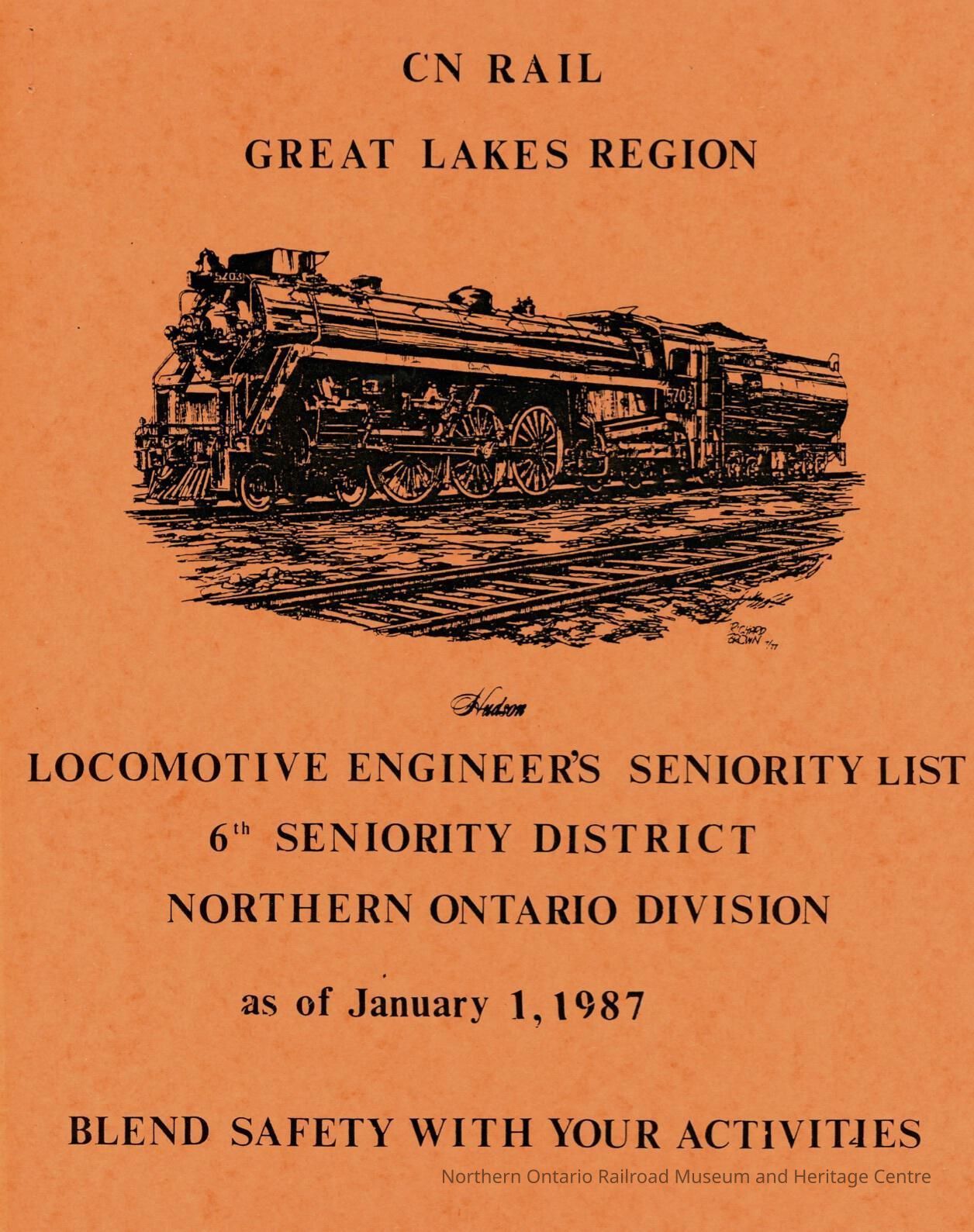 Canadian National Railway, Locomotive Engineer's Seniority District, Northern Ontario District, January 1, 1987.Collection