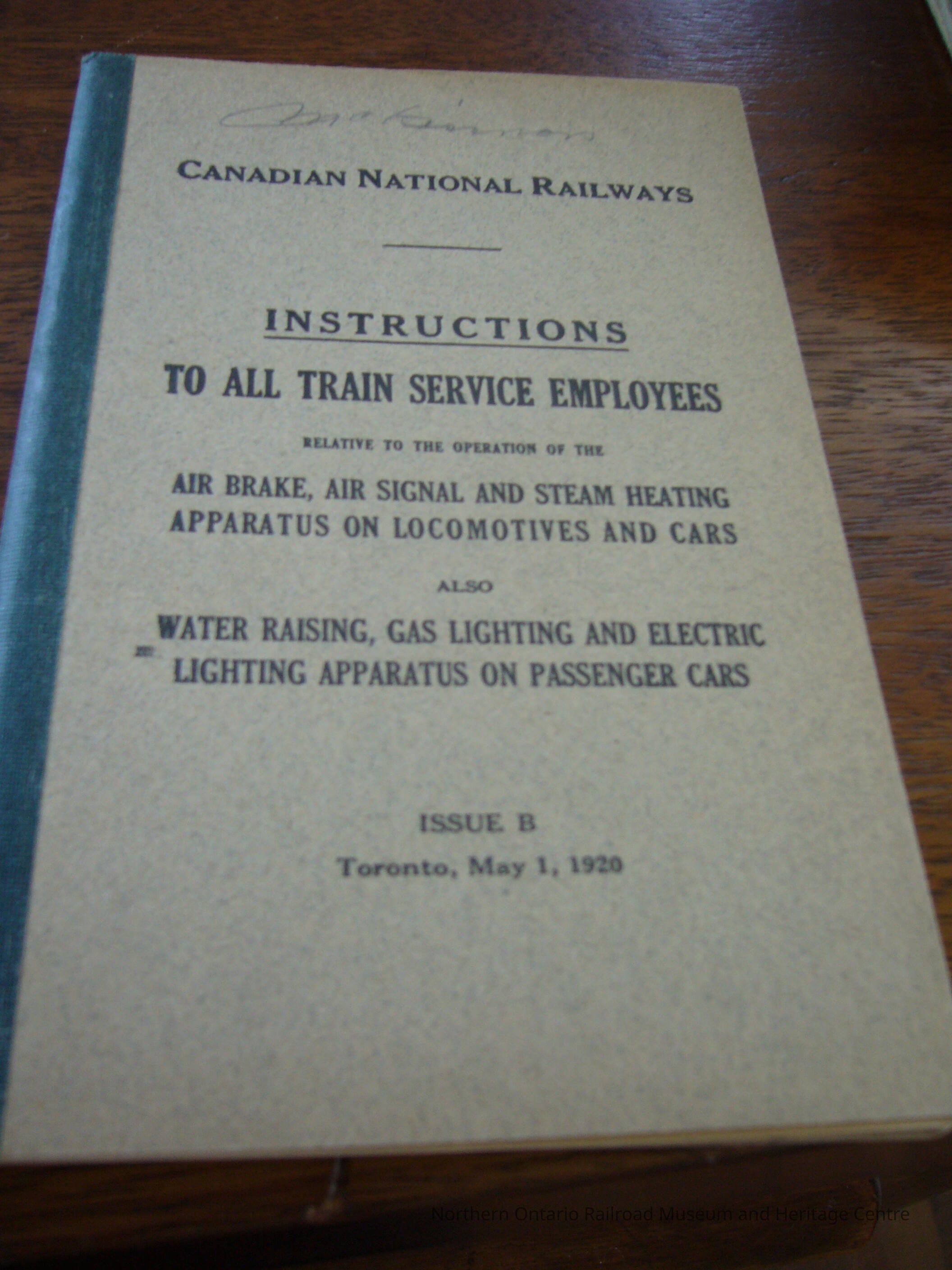 Instructions to all train service employees relative to the operation of the air brake, air signal, and steam heating apparatus on locomotives and cars. Also water raising, gas lighting and electric lighting apparatus on passenger cars.Collection
