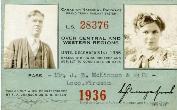 Canadian National Railways Central and Western Regions Pass, J. B. McKinnon and Wife, 15 Years Service, 1936Entry/Object ID