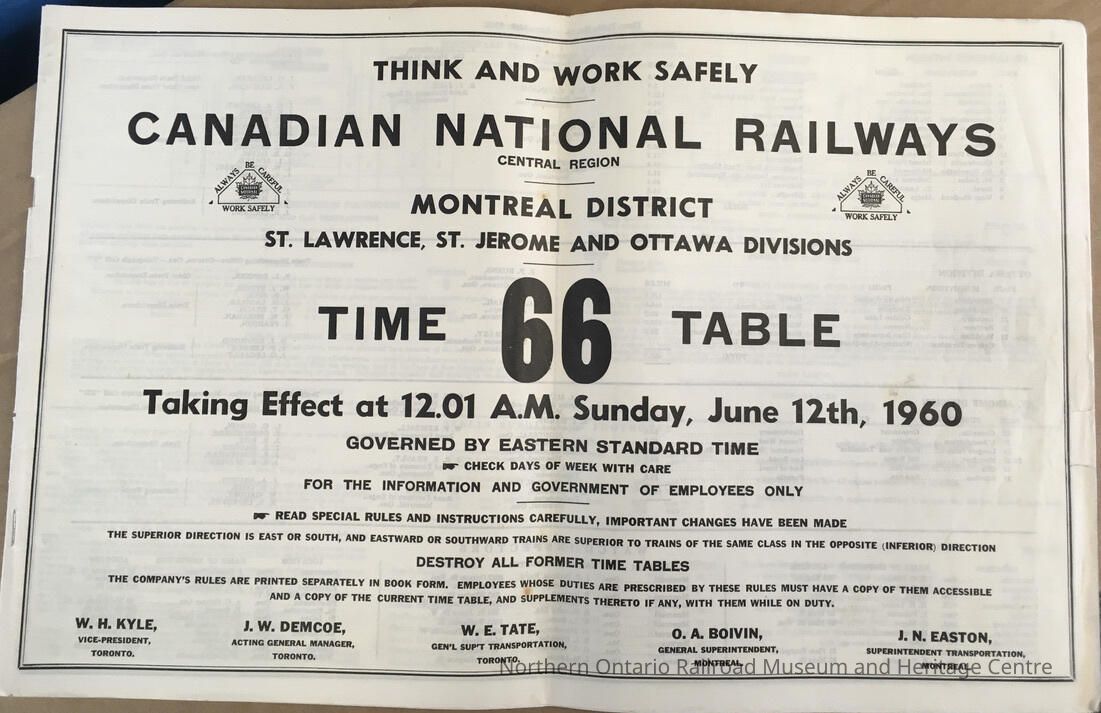 Canadian National Railways, Central Region, Montreal District, St. Lawrence, St. Jerome and Ottawa Divisions, Timetable 66, 1960Entry/Object ID