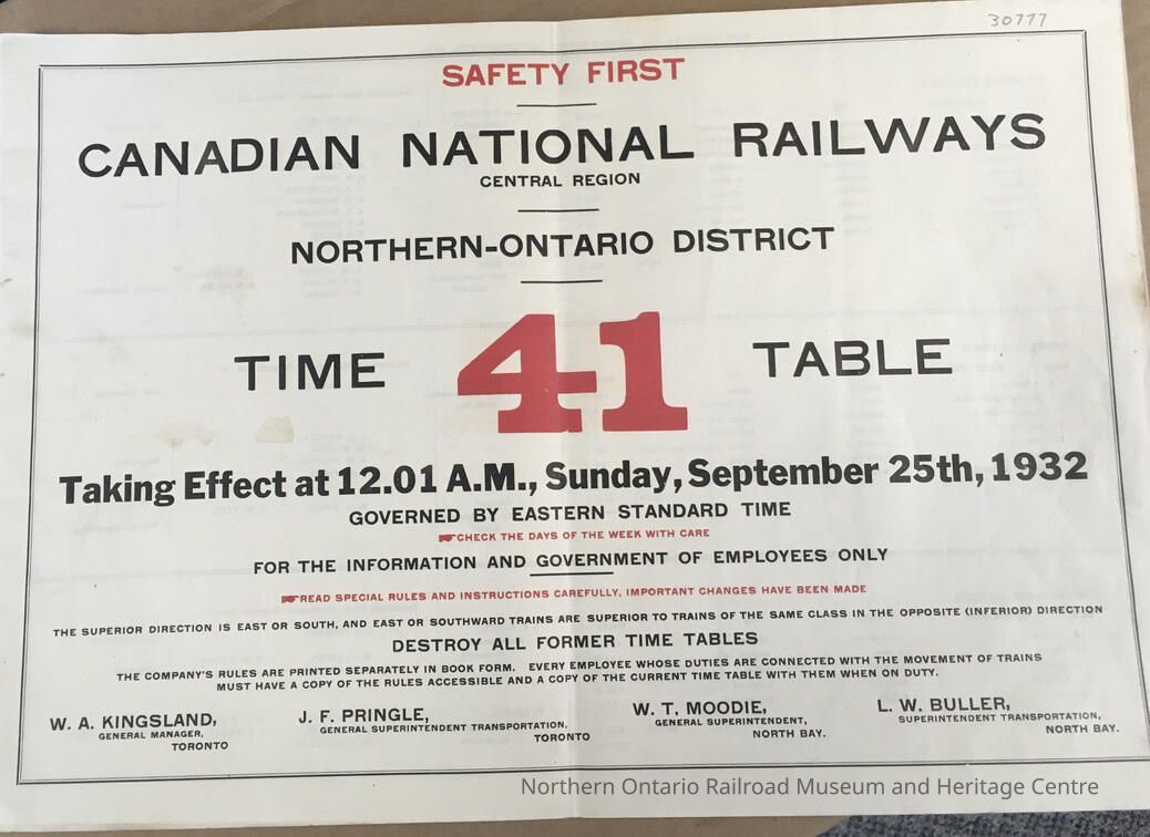 Canadian National Railways, Central Region, Northern Ontario District, Time table 41, 1932Entry/Object ID