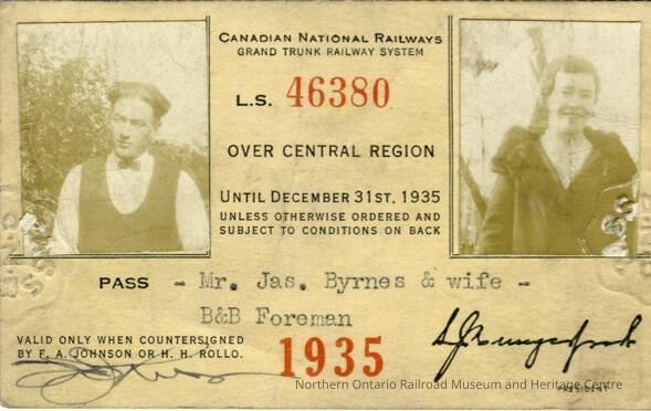 Canadian National Railways: Central Region Pass, Jas Byrnes and Wife, 1935Entry/Object ID