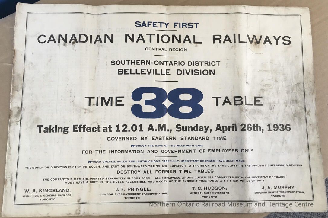 Canadian National Railways, Central Region, Southern Ontario District, Belleville Division, Timetable 38, 1936Entry/Object ID