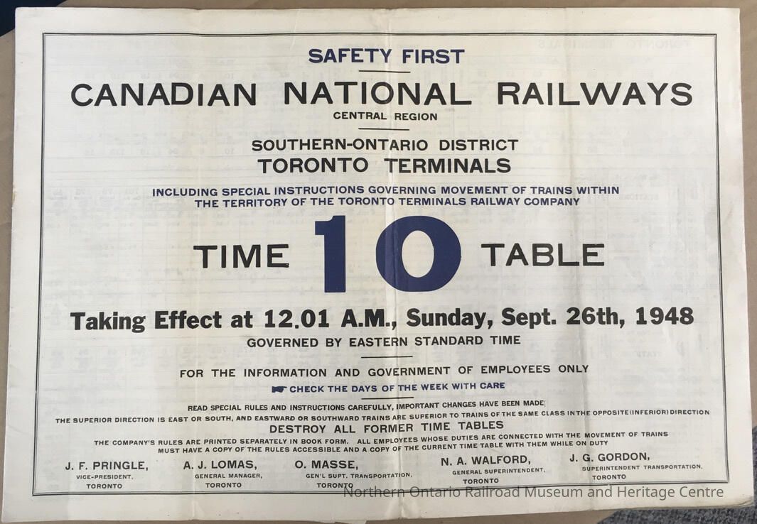 Canadian National Railways, Central Region, Southern Ontario District, Toronto Terminals, Timetable 10, 1948Entry/Object ID