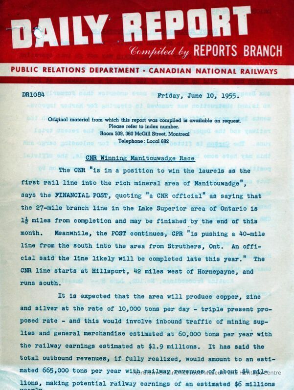 Canadian National Railways, Daily Report, Public Relations Department.Collection