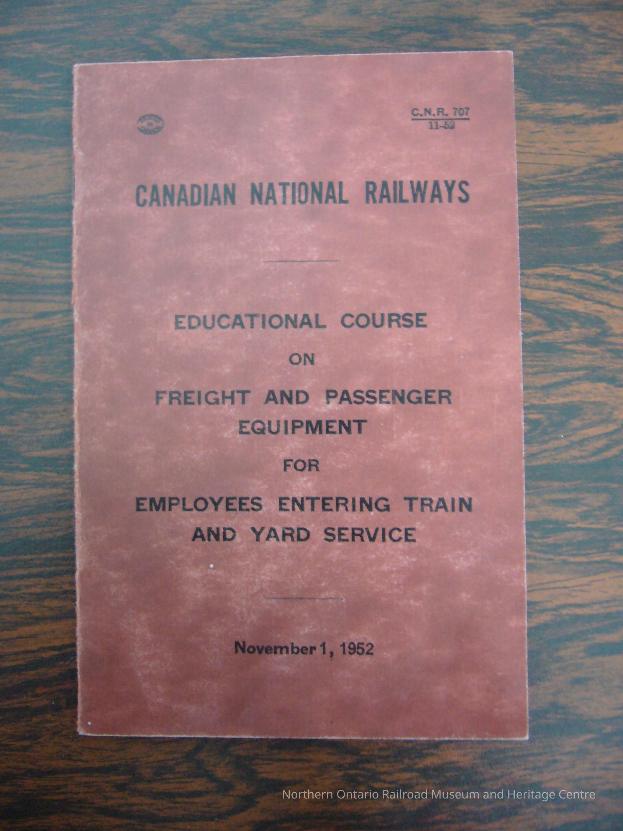 Canadian National Railways Educational Course on Freight and Passenger Equipment for Employees Entering Train and Yard Service, November 1, 1952Description