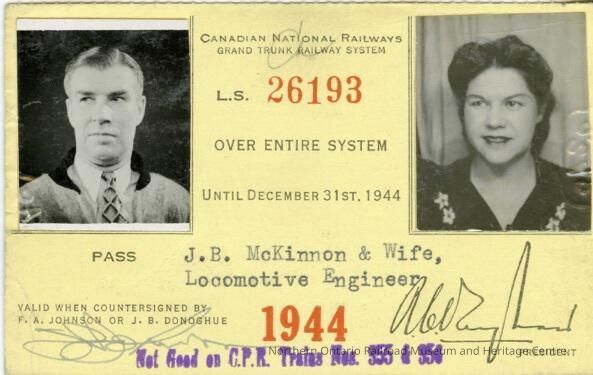 Canadian National Railways: Entire System Pass, J. B. McKinnon and Wife, 1944Entry/Object ID