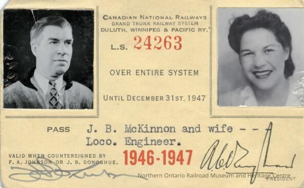 Canadian National Railways: Entire System Pass, J. B. McKinnon and Wife, 1946-1947Entry/Object ID