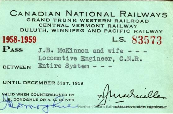 Canadian National Railways: Entire System Pass, J. B. McKinnon and Wife, 1958-1959Entry/Object ID