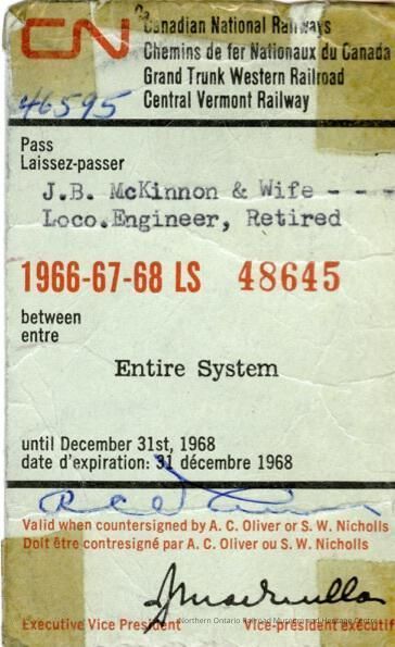 Canadian National Railways: Entire System Pass, J. B. McKinnon and Wife, 1966-1968Entry/Object ID