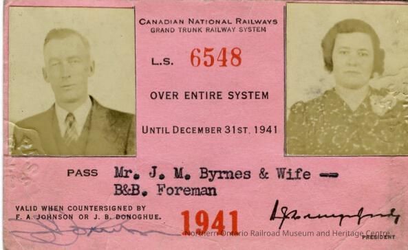 Canadian National Railways: Entire System Pass, J. M. Byrnes and Wife, 1941Entry/Object ID