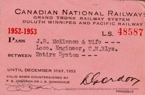 Canadian National Railways: Entire System Pass, J.B. McKinnon and Wife, 1952-1953Entry/Object ID