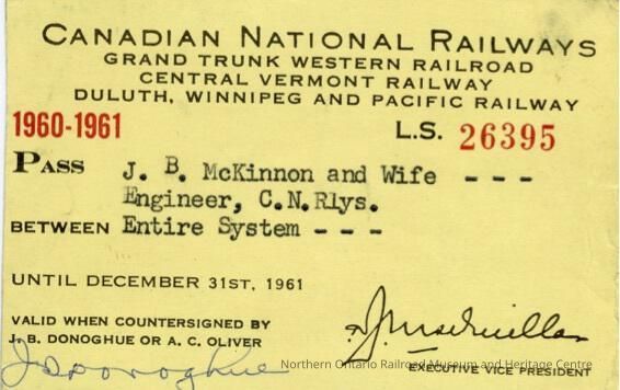 Canadian National Railways: Entire System Pass, J.B. McKinnon and Wife, 1960-1961Entry/Object ID