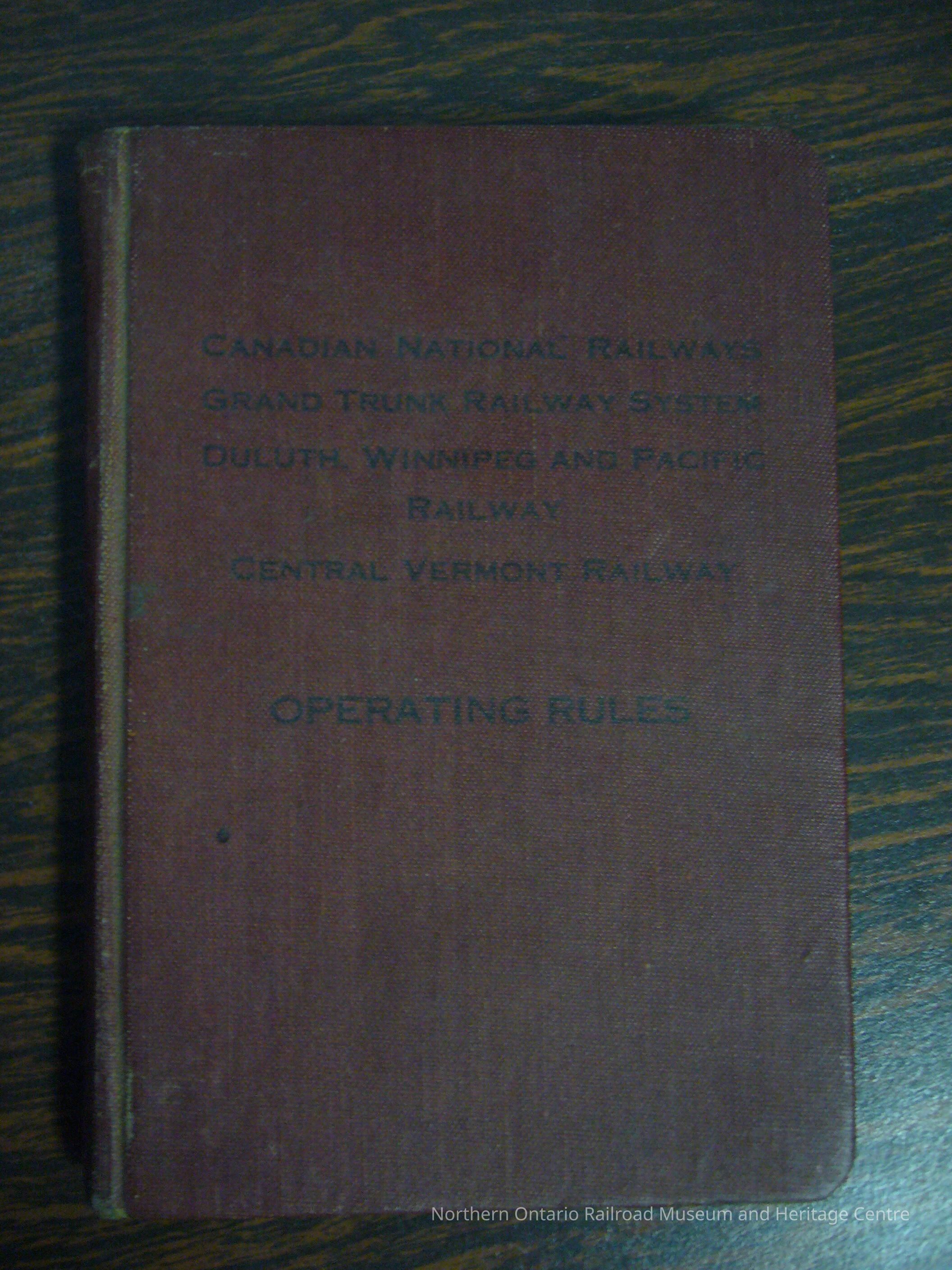 Canadian National Railways, Grand Trunk Railway System, Duluth Winnipeg and Pacific Railway, Central Vermont Railway Operating Rules.Collection