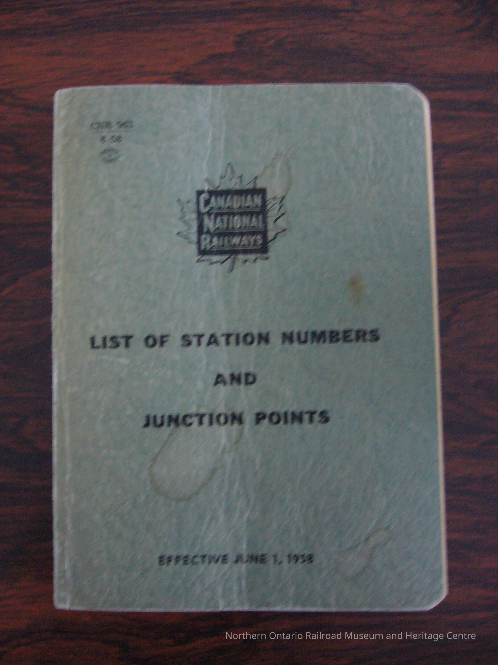 Canadian National Railways list of station numbers and junction points, effective June 1, 1958.Collection