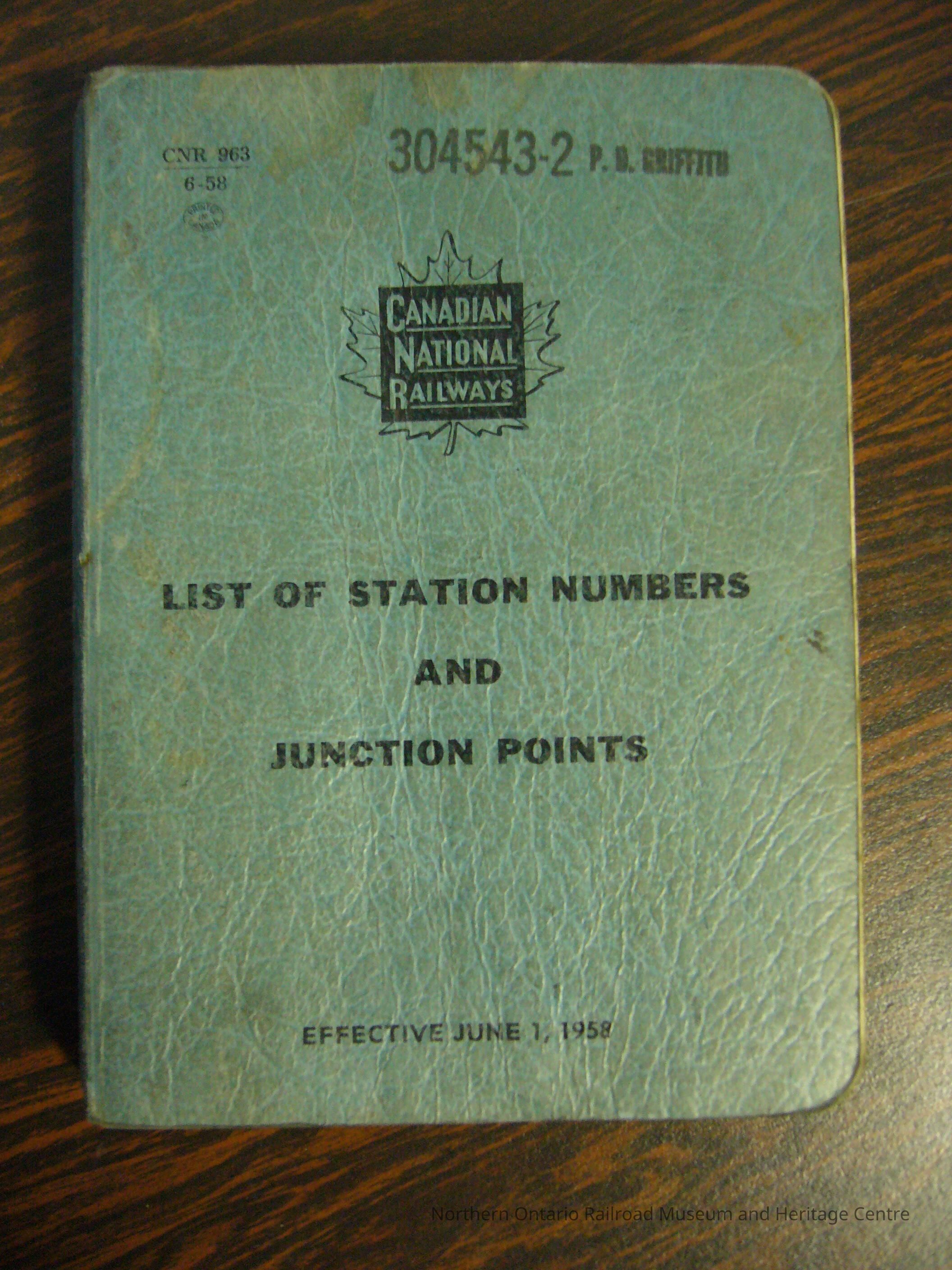 Canadian National Railways List of Station Numbers and Junction Points, Effective June 1, 1958.