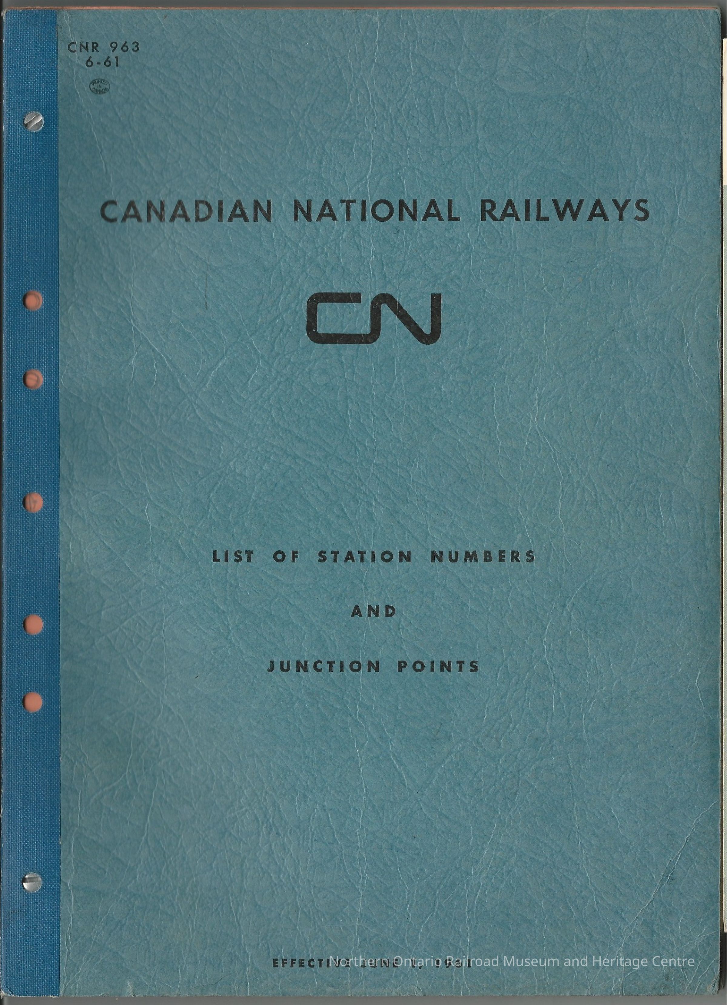 Book published by Canadian National in 1961 listing all station numbers and junction points on the railway system.