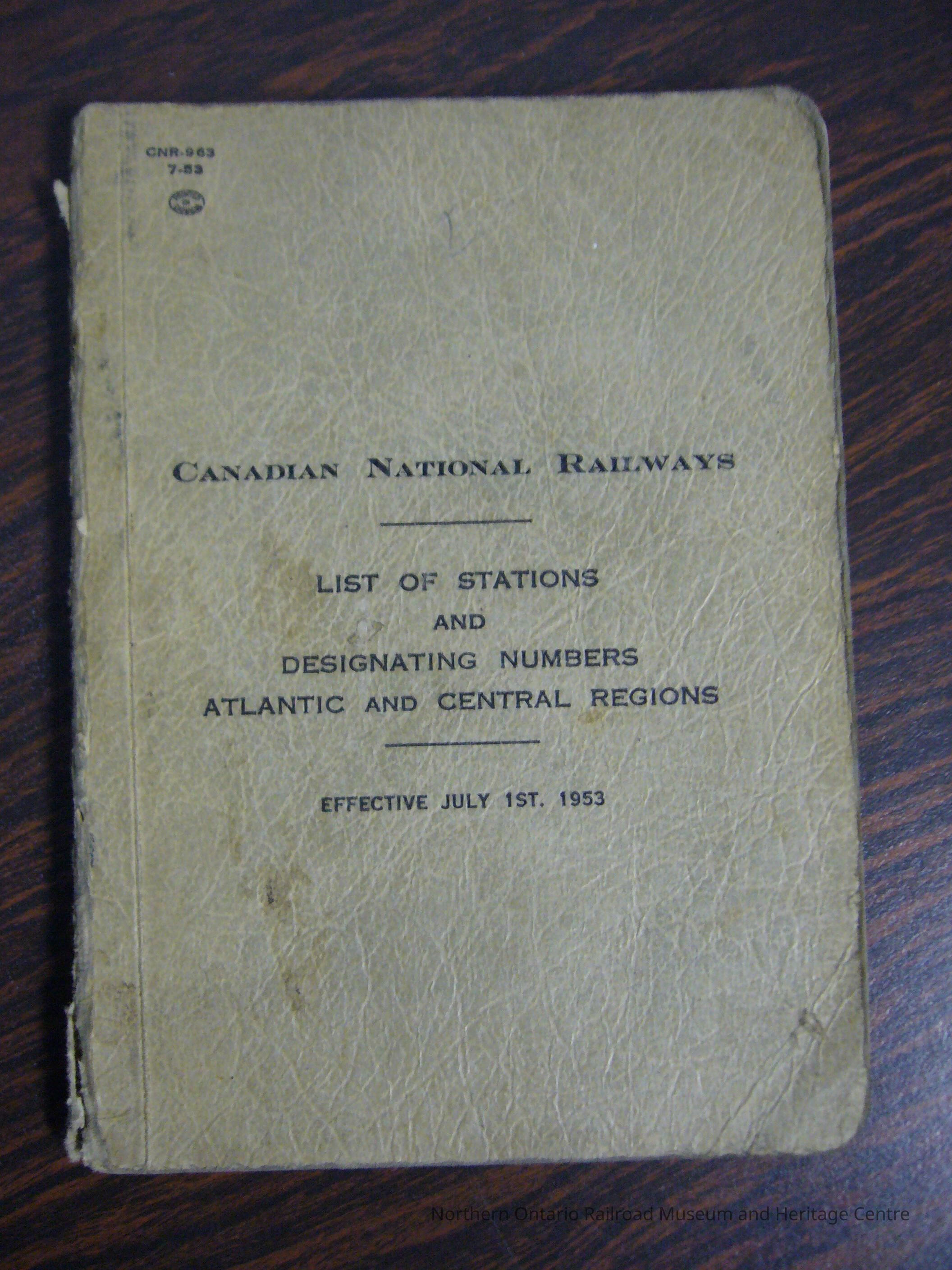 Canadian National Railways List of Stations and Designating Numbers, Atlantic and Central Regions, Effective July 1st, 1953Description