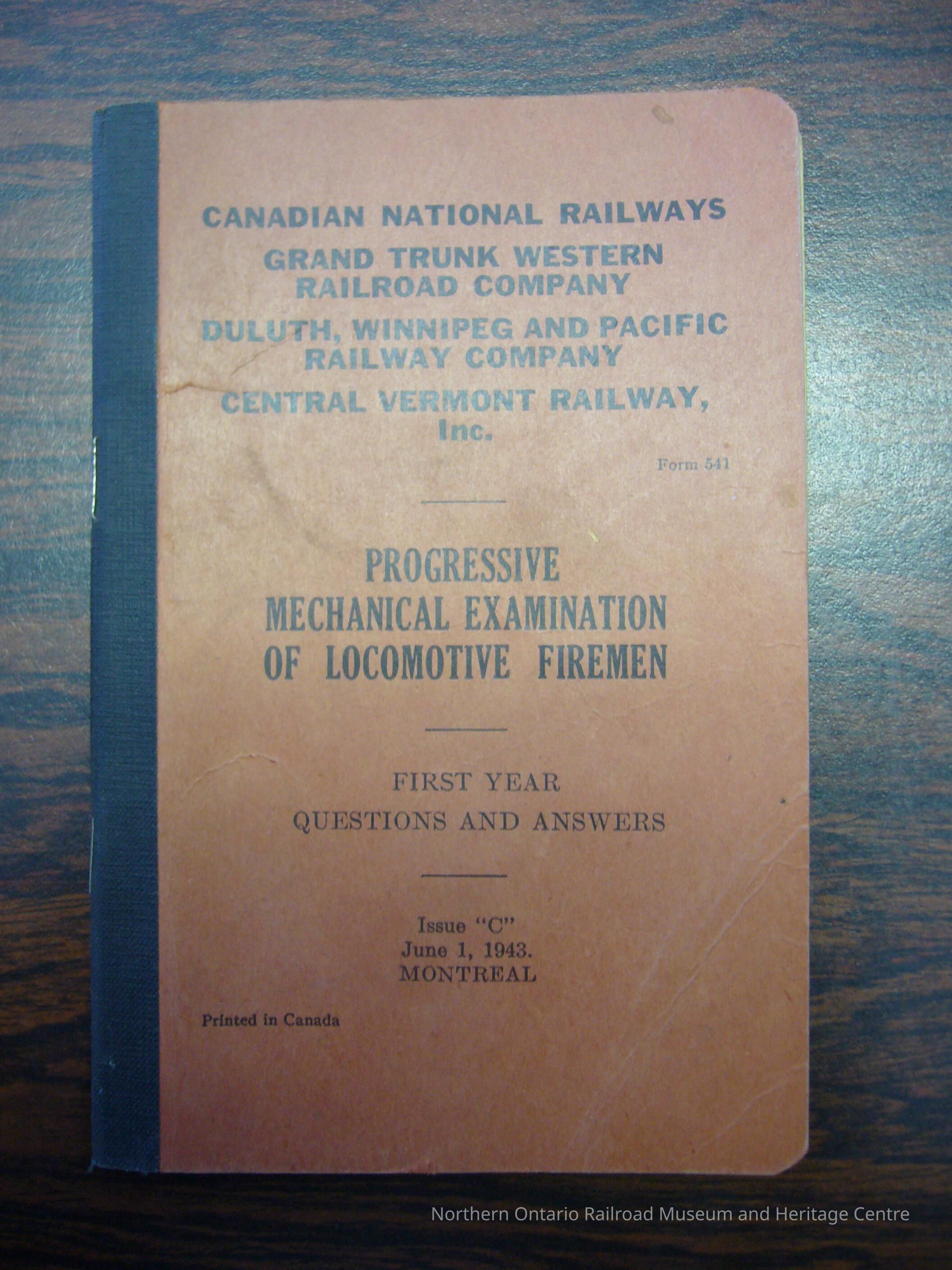 Canadian National Railways Progressive Mechanical Examination of Locomotive Firemen, First Year Questions and Answers, Issue "C", June 1, 1943, Montreal.