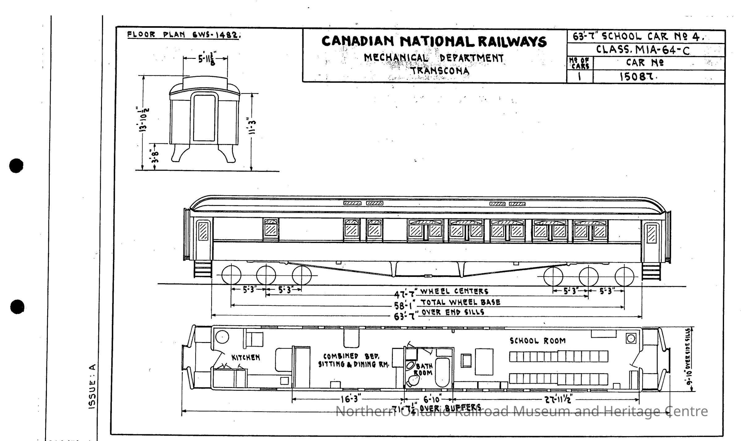 Canadian National Railways School Car No. 15087 class MIA-64-C BlueprintsEntry/Object ID