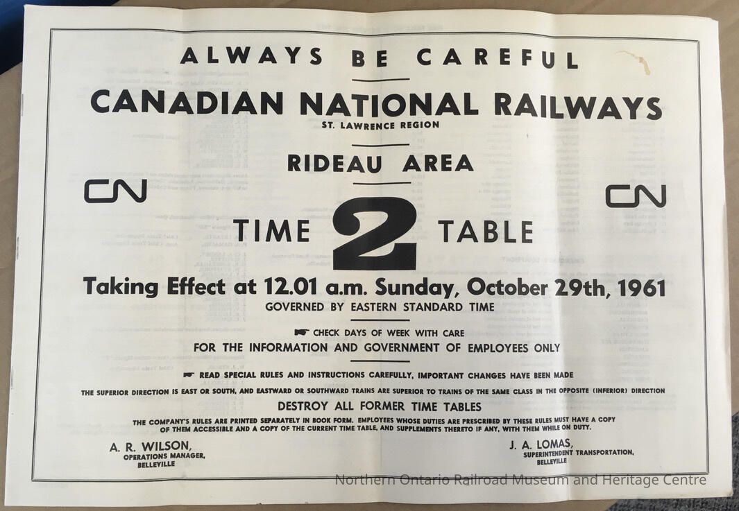 Canadian National Railways, St. Lawrence Region, Rideau Area, CN, Timetable 2, 1961Entry/Object ID