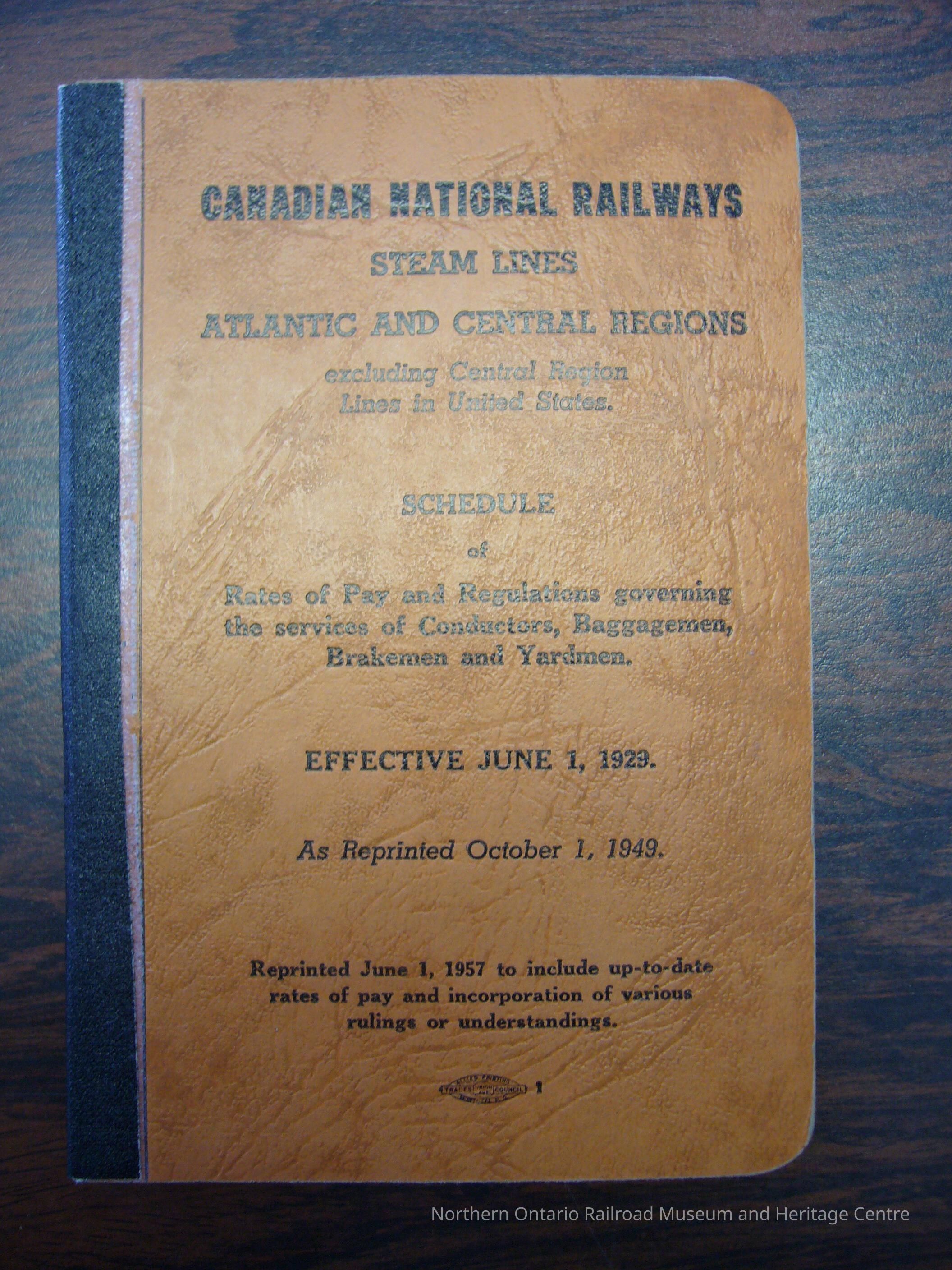 Canadian National Railways Steam Lines, Atlantic and Central Regions Schedule of Rates and Pay and Regulations Governing the Services of Conductors, Baggagemen, Brakemen and Yardmen, Effective June 1st, 1929Entry/Object ID