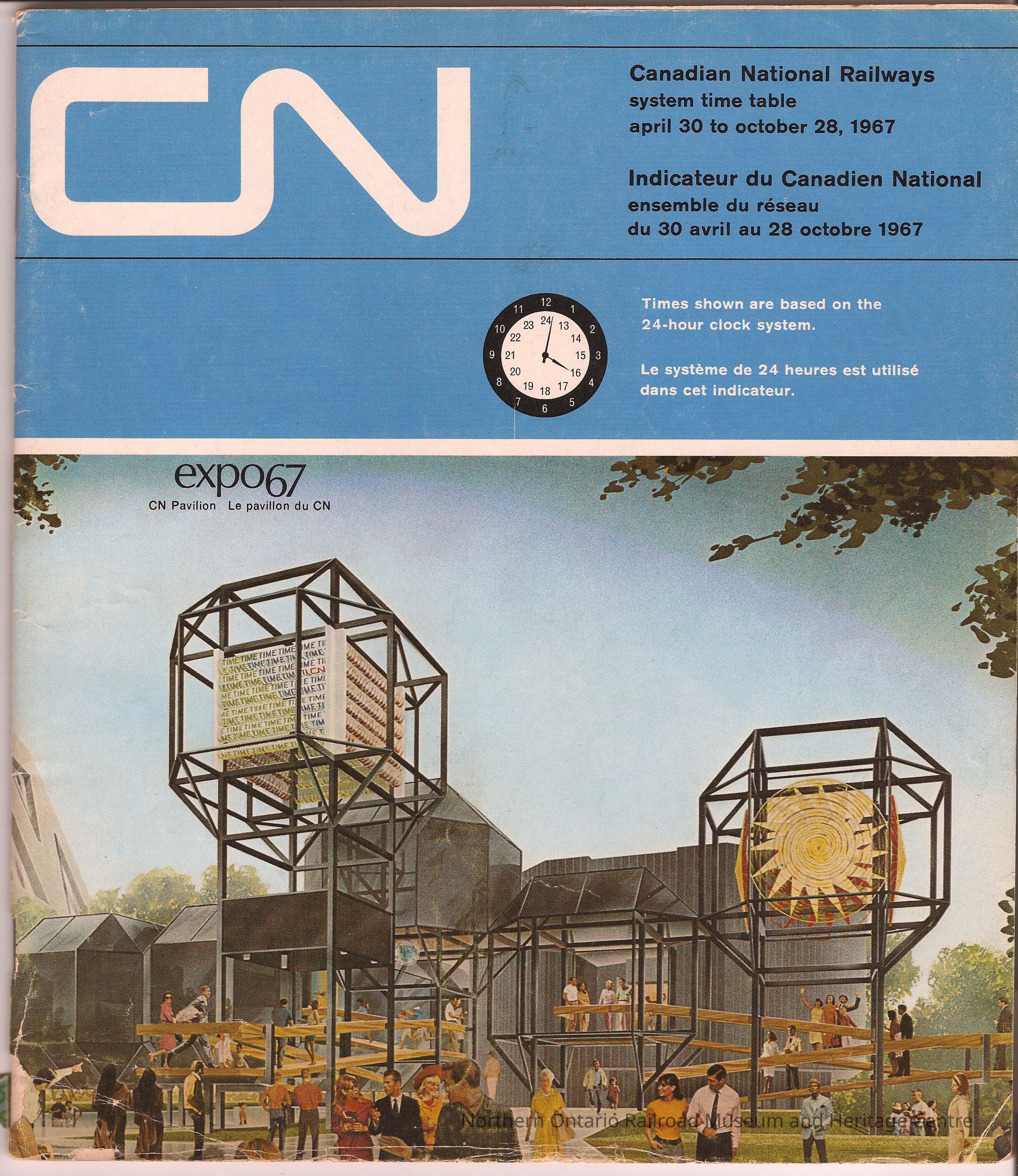 Canadian National Railways public time table for April 30 to October 28, 1967.Collection