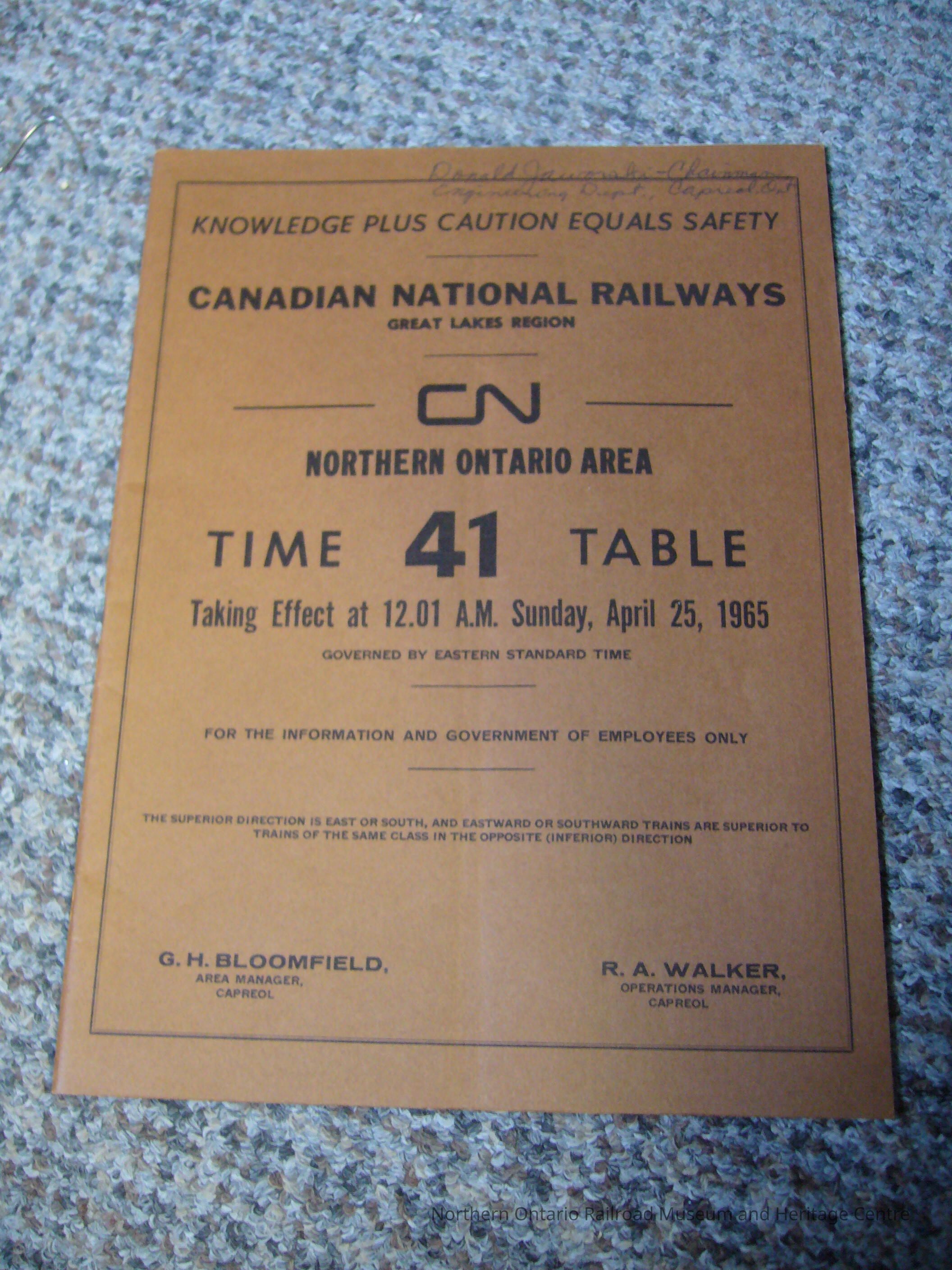 Canadian National Railways Timetable Northern Ontario 41 April 25, 1965Entry/Object ID