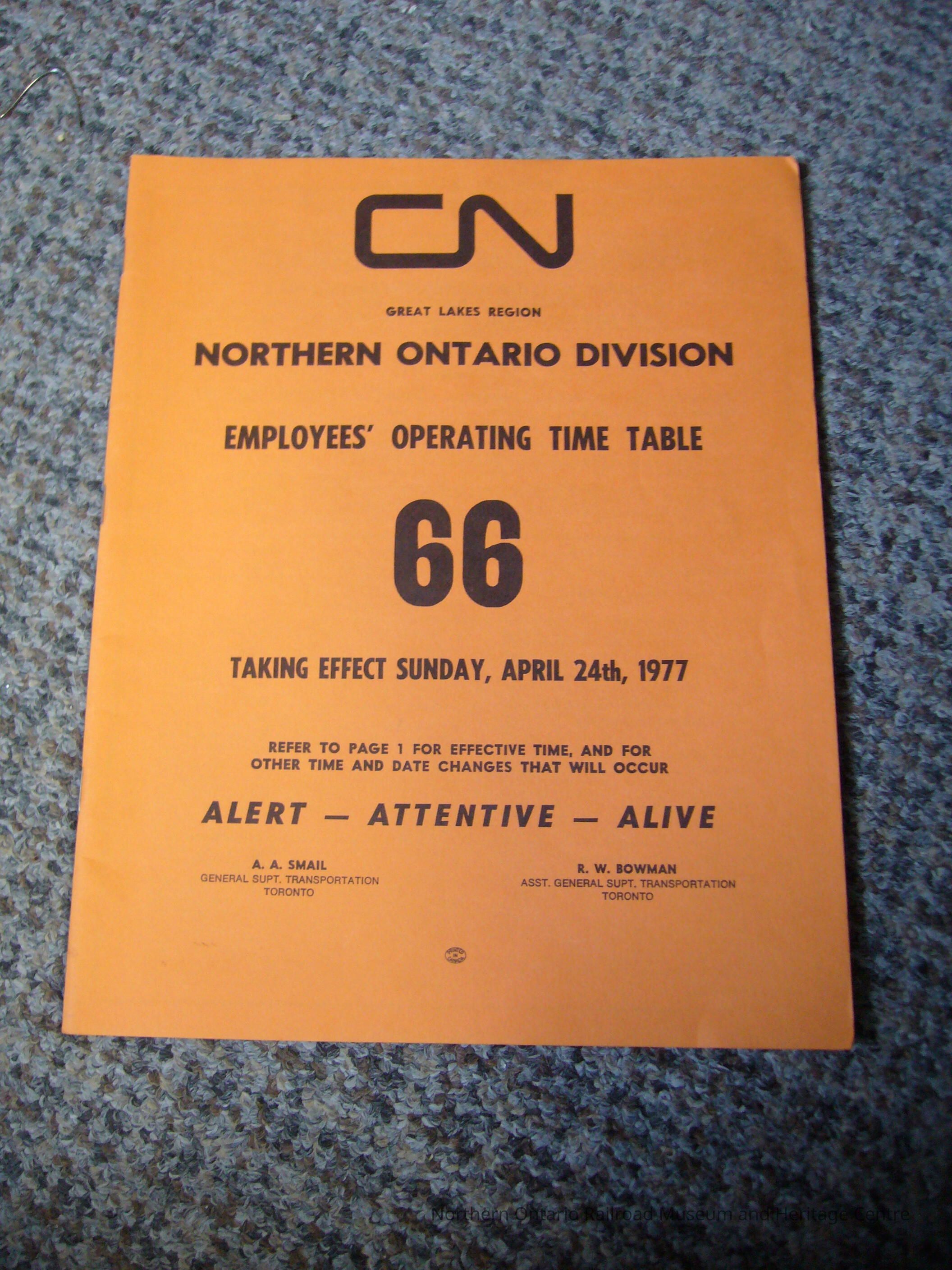Canadian National Railways Timetable Northern Ontario 66 April 1977Entry/Object ID