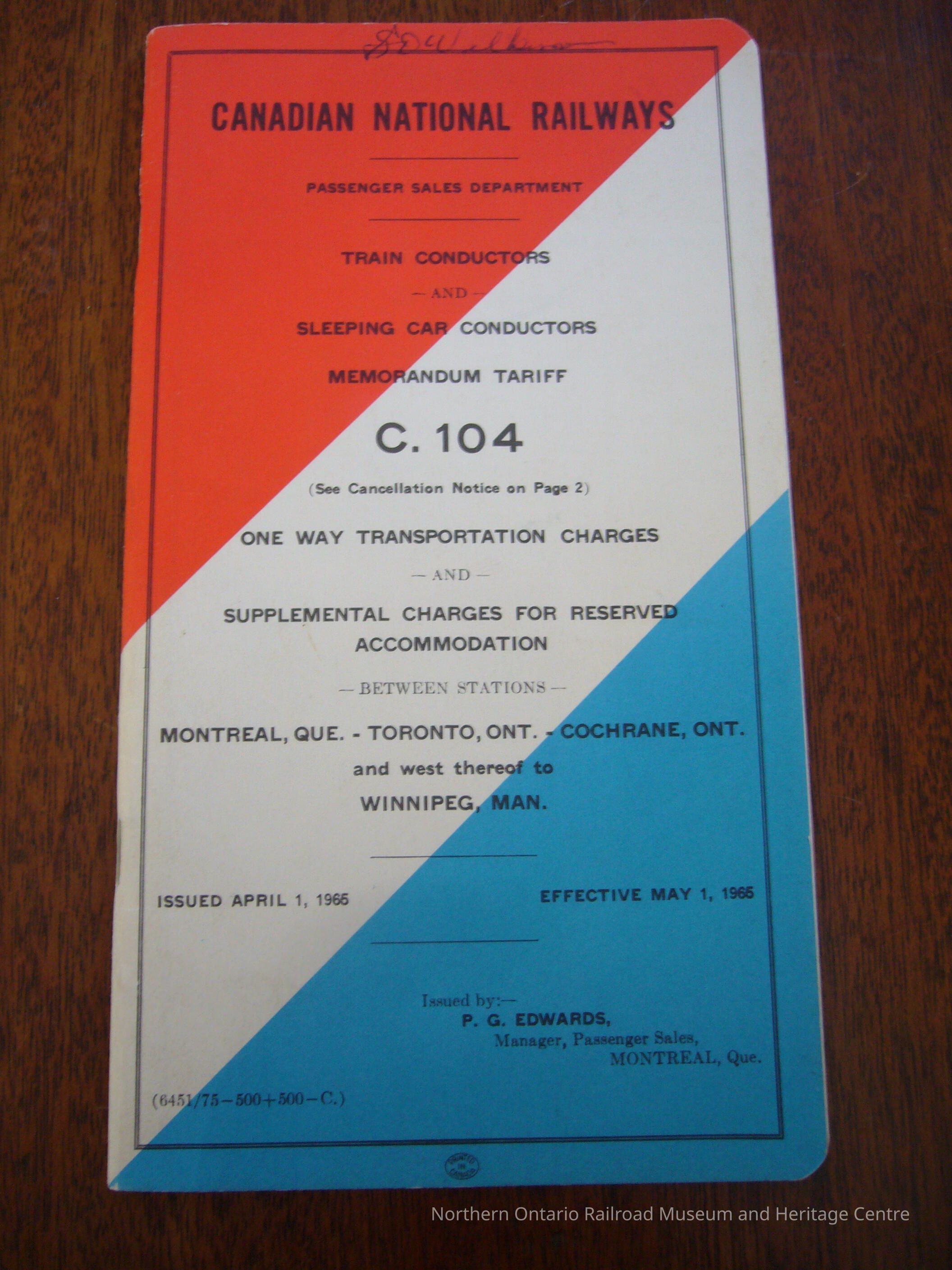 Canadian National Railways Train Conductors and Sleeping Car Conductors Memorandum Tariff C.104Description