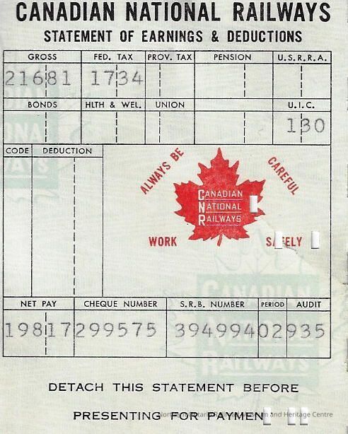 Canadian National Statement of Earnings and Deductions Belonging to Frank MazzucaEntry/Object ID