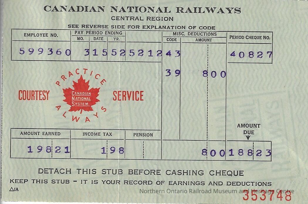 Canadian National Statement of Earnings and Deductions belonging to Frank MazzucaEntry/Object ID